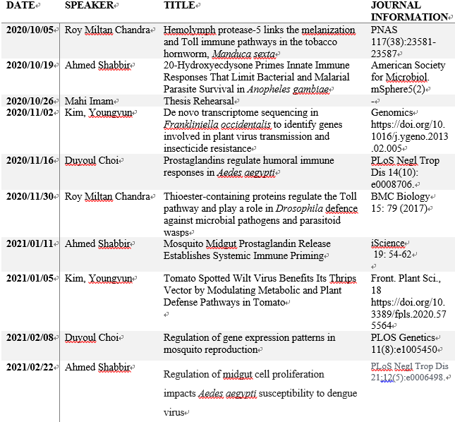 IMP(INSECT MOLECULAR PHYSIOLOGY) JOURNAL CLUB
